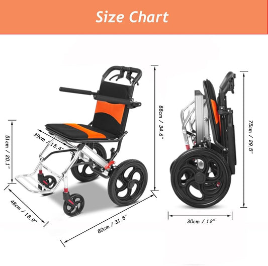 Ultra Lightweight Compact Folding Transit Wheelchair with Traveling Handle & Carry Bag