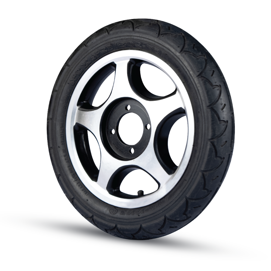 Replacement back wheel with PU tyre and hub, ensuring smooth and reliable performance for Vissco power wheelchairs.